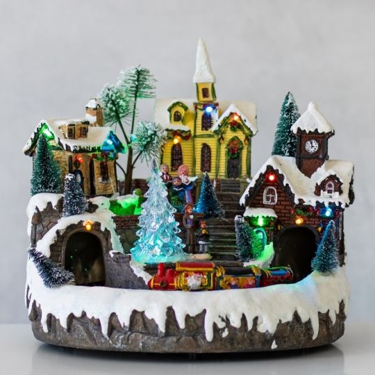 Новорічна композиція виготовлена з декількох матеріалів. Основні це пластик, скло та полістоун. Всі матеріали якісні, що підтверджує зовнішній вигляд виробу. Новорічна композиція стане прекрасним елементом декору, вона подарує вам затишок і тепло, попри холодні зимові вечори. Також це чудовий варіант для подарунка.